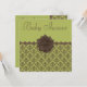 Elegant custom neutral olive green and brown damask Baby Shower invitations for girls or boys with beautiful digital brown fabric flowers, a chic string of chocolate brown pearls and a pretty green and brown vintage damask pattern. These classy invites are decorated both sides. Classy, chic, trendy, modern invitations with a vintage look. Please note: All invites on Zazzle have flat printed images. Text, font and colour of font are all customisable. If you need assistance customising your product please contact me through my store and I will be happy to help.
