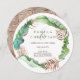 Unique round card with green and brown tropical banana leaves wreath is a beautiful way to announce your beach wedding! Simple palm leaf and banana leaf design is versatile for an assortment of island, beach wedding, or destination wedding cards and signs. Unique watercolor leaf artwork is a great minimalistic design for basic tropical island themes.