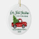 Modern Brush Script Our First Christmas in our New Home Ornament includes Watercolor Vintage Red Truck with Christmas Tree - Forest Green Script