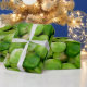 Pale gift paper printed with glorious green Brussels sprouts. Nice and fun. Ideal for presents to vegetarians and gardeners interested in.
