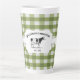 Enjoy your morning coffee with this rustic Green Buffalo Plaid Farm Cow Latte Mug. Mug design features a farm cow on an elegant tag and custom text for you to personalise with your family name against a gingham pattern background. Additional home decor items available with this design.