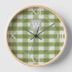 Green Buffalo Plaid Monogram Clock