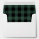 Elegant preprinted envelope with your names and return address on the back flap, and a rustic farmhouse style with green and black buffalo plaid pattern on the inside.