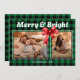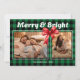 Green Buffalo Plaid Ribbon Two Photos Christmas Holiday Card