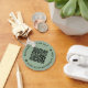 Customisable QR Code keychain, with a sage green background. To generate a new QR code on the design, add your website URL or social media handle in the " personalise this template" feature.