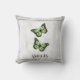Add an elegant touch to your living or bedrooms with a Green Butterfly Floral Personalised Throw Pillow. Pillow design features a pair of vibrant butterflies resting on a white floral vine against a light grey grunge background. Additional gift items available with this design as well.