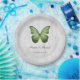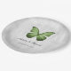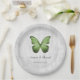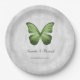 Elegant and simple Wedding paper plates featuring a Green Butterfly against a grey grunge background. This design is a unique choice for a modern wedding. Easy to customise with your wedding details. Click "Customise It" to find more personalisation options.