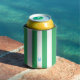 Green Cabana Stripe & Personalised Blue Monogram Can Cooler