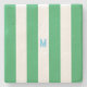 Green Cabana Stripe & Personalised Blue Monogram Stone Coaster
