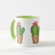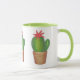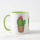Ceramic mug features an original marker illustration of a prickly green cactus with an orange bloom on top.