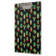 Add a touch of chic desert vibes to your workspace or school supplies with this Green Cactus on Black Background Clipboard. Perfectly blending functionality with style, this clipboard is designed for those who appreciate both productivity and aesthetics. Its sleek and striking black base beautifully highlights the vibrant green cactus patterns, making it an eye-catching accessory.
