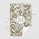 Monogrammed golf towels with a trendy camouflage pattern in pastel green camo background.