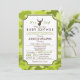 It's a boy! Cute, elegant deer hunting theme baby shower invite on green camouflage, camo pattern with green, brown, and white vintage formal look. Great for hunter, camo theme baby showers. Retro bracket shape invitation.