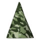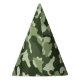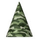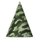 A classic green camouflage party hat for kids and adults with a rugged army vibe for all occasions including birthdays, anniversaries, father's day, and holidays.
