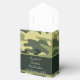 Modern green military hunting pattern, this formal traditional wedding favour box,  can easily be personalised with bride and grooms names  to the templates to create a unique stylish alternative custom  favour box for your special hunting, redneck or army occasions and celebrations, part of a coordinated matching wedding suite set.