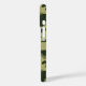 Customize this multi-hued green camouflage iPhone 16 case with your name in a trendy modern CAP font in dark green on light green. It's masculine and perfect for your favorite military, hunting, country or outdoorsman!