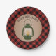 Green Camping Lantern Lumberjack Plaid Baby Shower Paper Plate