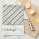 Green Candy Cane Striped Christmas Holiday Party Tea Towel