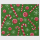 This joyful design features a classic red and white candy cane and peppermint swirl pattern set against a rich, vibrant green background. Adorable white snowflakes and polka dots are scattered throughout, adding an extra touch of winter cheer.