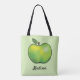 Green Cartoon Apple Fruit With Custom Name Tote Bag
