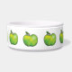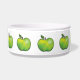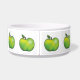 Destei's cartoon illustration of a green apple fruit with a small leaf on the stem. The design is placed so that it goes around the bowl. Cute design for a pet named "Apple", for example.