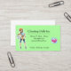 Green Cartoon Girl House Cleaning Service Business Card