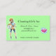 Green Cartoon Girl Cleaning Service business cards.