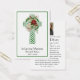 Remember your loved ones in prayer with this beautiful traditional Catholic Funeral prayer card with and image of the green Celtic Irish Cross with a red and white roses bouquet. All text and fonts can be modified.