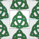 Green Celtic knot Triquetra half drop pattern on a white background.