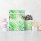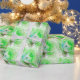 Green rose with a shamrock on its cheek over a green jewel-like background.