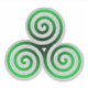 A large green spiral Celtic triskele, or triskelion. This is an ancient symbol dating back to Neolithic times in Western Europe, and is an important emblem of Celtic culture.