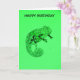 Perfect for children's birthday with original design of watercolour and ink illustration by artist Sacha Grossel of brightly coloured green, patterned chameleon against a bright, apple green background. This quirky illustration of this reptile is cute and funny and for lizard and animal lovers everywhere.