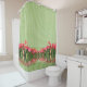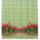 Boring bathroom, but don't want to redecorate? This fresh and pretty green gingham check shower curtain with a border of red tulips will brighten up a dull bathroom.