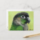 This postcard features a reproduction of my original oil painting of a green cheeked conure.