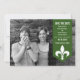 Modern and elegant Chic Flourish Banner Photo Save the Date Announcement featuring an arrow banner in dark green adorned with a simple fleur de lis ornament. This classy save the date invitation is perfect for announcing your upcoming wedding. Easy to customise, simply add your own photo and wedding details. Click "Customise It" to find additional personalisation options.