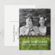Funky and offbeat Chic Steampunk Photo Save the Date Postcard featuring a grunge gear pattern background in olive green and a hounds-tooth pattern digital art flat ribbon border in dark brown. This alternative design would be perfect for announcing a vintage steampunk themed wedding! Easy to customise, simply add your wedding details and a photo to make this design your own. Click on "Customise It" to find more personalisation options.