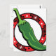 A single green chilli pepper with a red ring graphic behind it. Great graphic for anyone needing hot pepper images! Add your own text for a custom pepper design! Great for chilli cookoffs, restaurants, kitchens, gardeners, or any hot pepper fans.