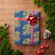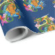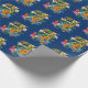 A green Chinese dragon with an orange koi fish with lotus flowers and cherry blossoms against a backdrop of dark blue.