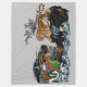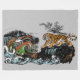 Green Chinese East Asian dragon versus White tiger in the landscape with waterfall,rocks and water waves . Two spiritual creatures in Classical Feng Shui representing Yin Yang. Illustration
