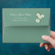 Sage green wedding envelope with chinoiserie floral liner and printed return address, designed to elevate your invitation suite with refined garden elegance. The coordinated floral interior adds a romantic surprise detail, perfect for spring and summer weddings. Ideal for English cottagecore, estate garden, or vintage inspired celebrations seeking a polished and cohesive presentation.