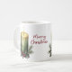 Cosy up this holiday season with a festive coffee mug featuring a glowing green Christmas candle surrounded by pine sprigs and red berries, paired with a cheerful "Merry Christmas" message. A perfect cup for winter mornings, seasonal gifting, filled with warmth and joy.