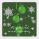 Share your holiday baking with friends and family with this Green Christmas Ornaments Baking Labels. Label design features a trio of hanging Christmas ornaments with falling snowflakes and a dark green background with a space you can personalise with your own holiday greeting and family name. Additional gift and home decor items available with this design as well.
