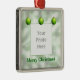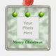 3 Green Christmas ornaments on a shimmery background. Customisable text says "Merry Christmas".