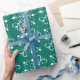 Elegant snowflakes decorate this Christmas green wrapping paper. The design is from original art.
