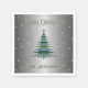 Green Christmas Tree Custom Name Silver Foil Napkin
