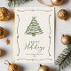 Green Christmas Tree Hand-Drawn Bow Ribbon Holiday Card