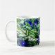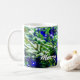 Green Christmas tree, blue decorative lights and red ornament ball covered with fresh snow. Cheerful and joyful mood. Merry Christmas and Happy New Year. Prints and gifts for anyone for fun and good mood. Coffee mug. You can change or delete the template text Merry Christmas.