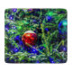 Green Christmas tree, blue decorative lights and red ornament ball covered with fresh snow. Cheerful and joyful mood. Merry Christmas and Happy New Year. Prints and gifts for anyone for fun and good mood. Square format products and souvenirs.