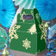A colourful Christmas gift box featuring a pattern of cream snowflakes, Christmas trees and swirls scattered over a traditional green Christmas background to add a touch of class and style to your Christmas gift giving this year.