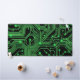 An intricate digital artwork featuring a glowing green circuit board pattern on a black background. The design showcases a complex network of interconnected lines and nodes representing electronic pathways, evoking themes of technology, connectivity, and modern computing.